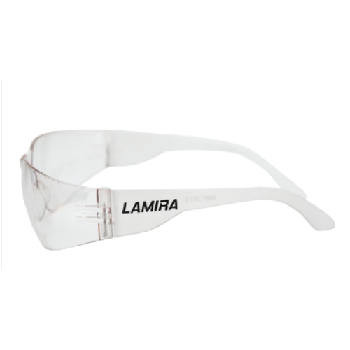 Lente de seguridad Marca Lamira, modelo 2993-CL. Ligero y cómodo. Facil de limpiar. No presenta grietas, torceduras, cortaduras o fallas de ensamble. Proteccion de alto impacto filtra el 99% de los rayos UV. Puente nasal universal.